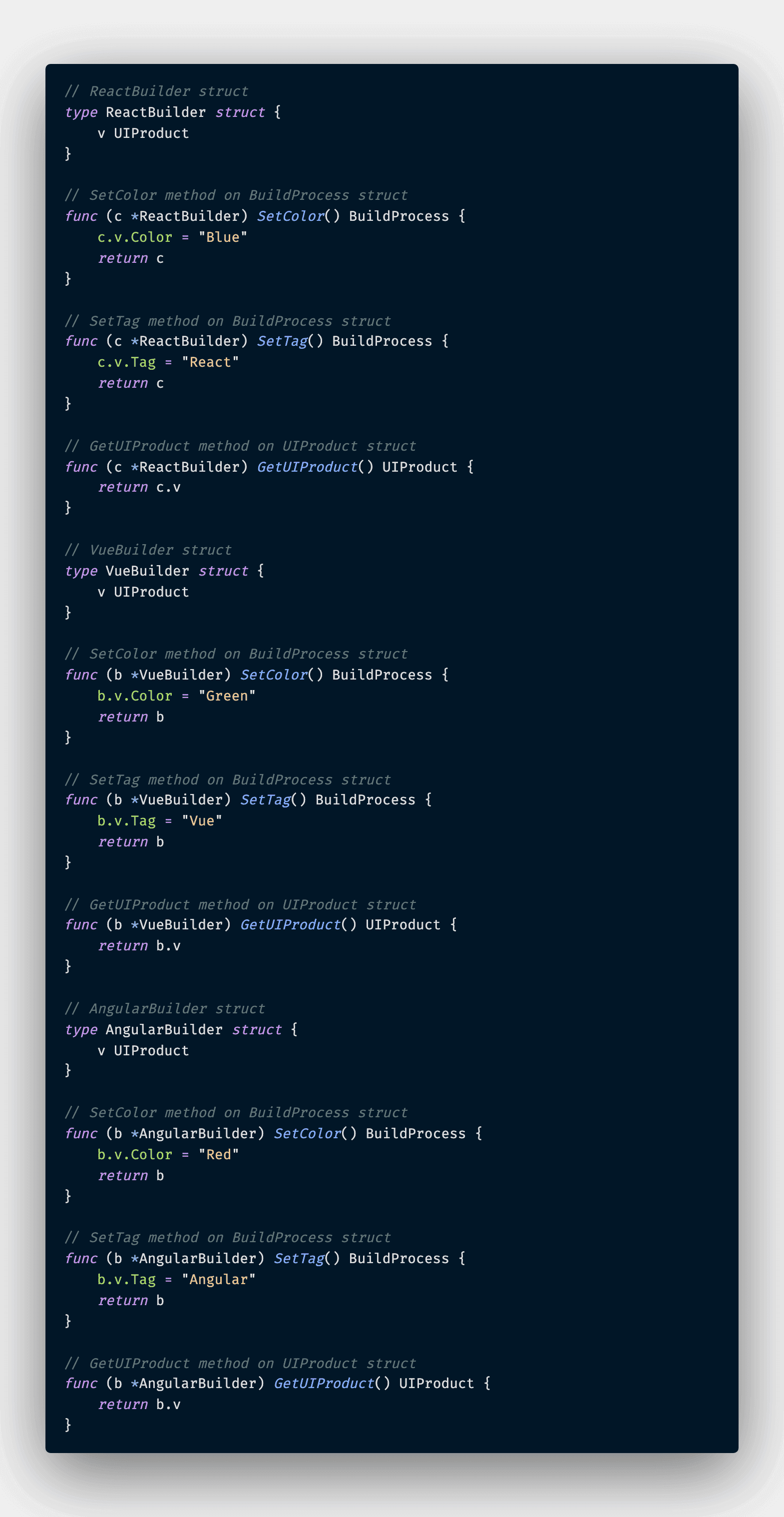 And there we goes, we have a complete implementation of Builder Pattern in Go.