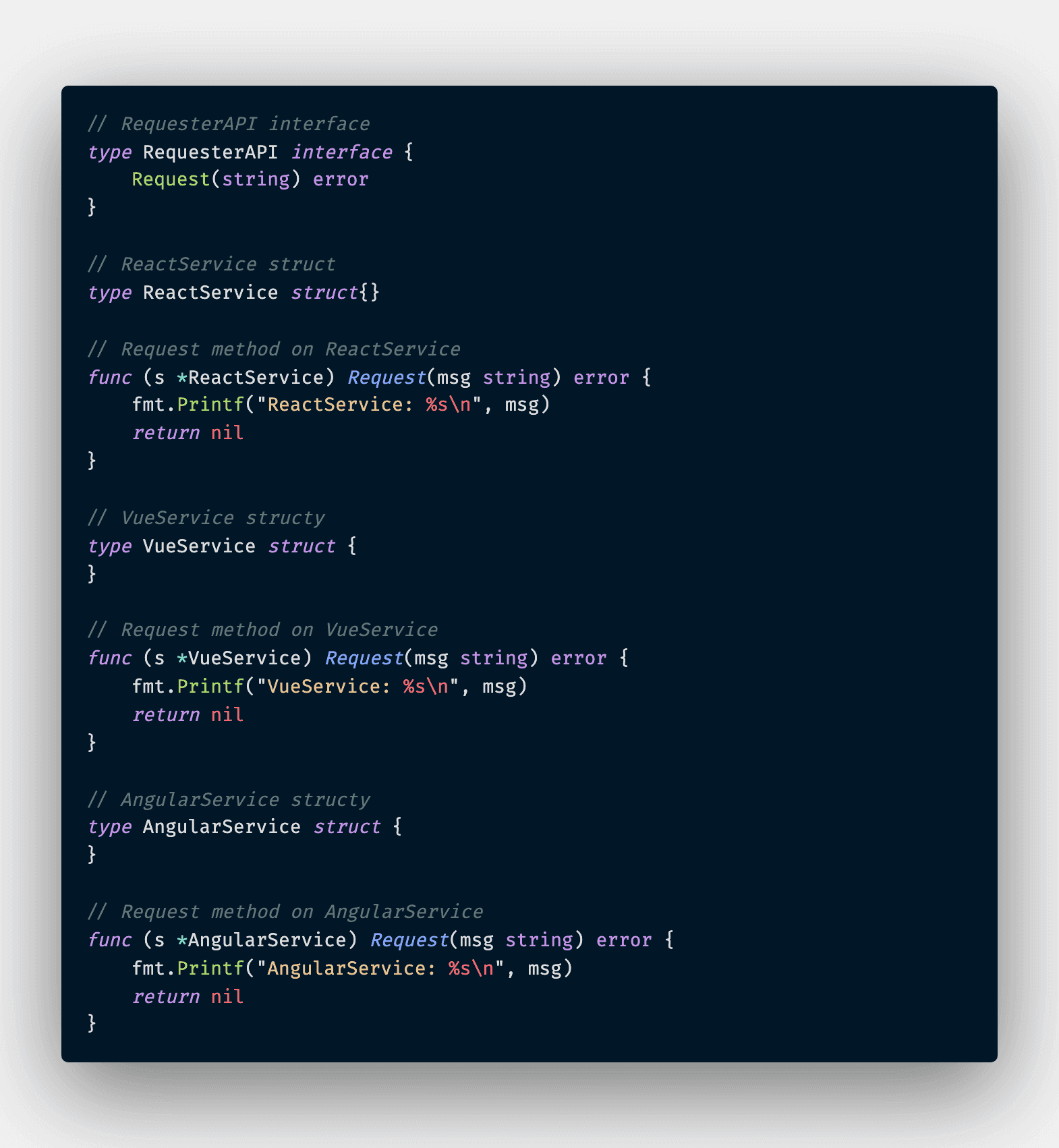 And there we have it - the Bridge Pattern implemented in Go. With this pattern, the consumer code is totally unaware of the development of abstraction and implementation internally. We could have multiple abstractions and implementations as long as it matches the bride interface among the two. Moreover, they all can be developed independently without the hassle of any inheritance
