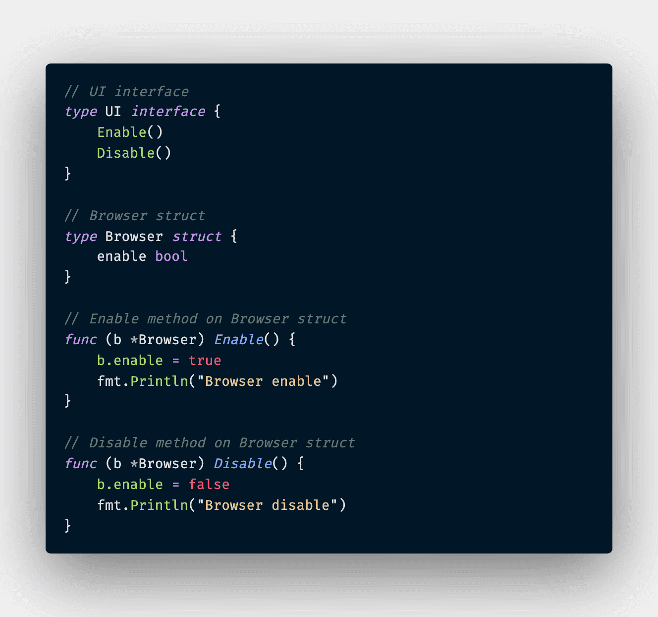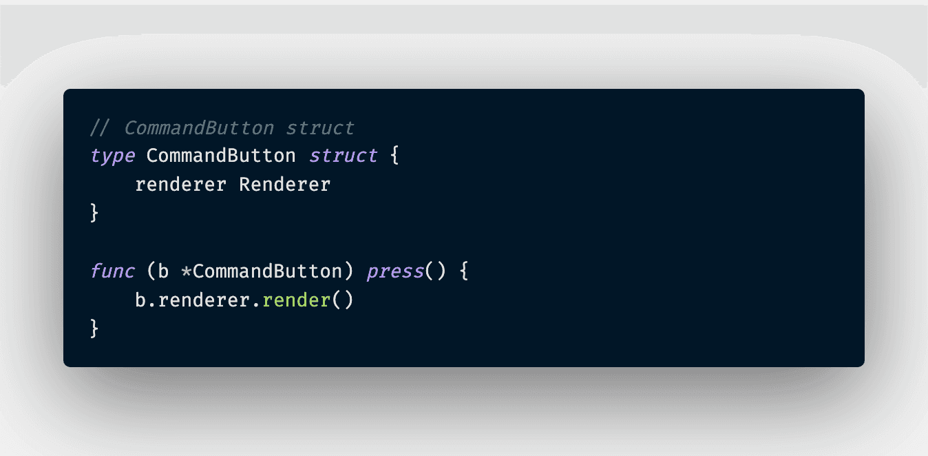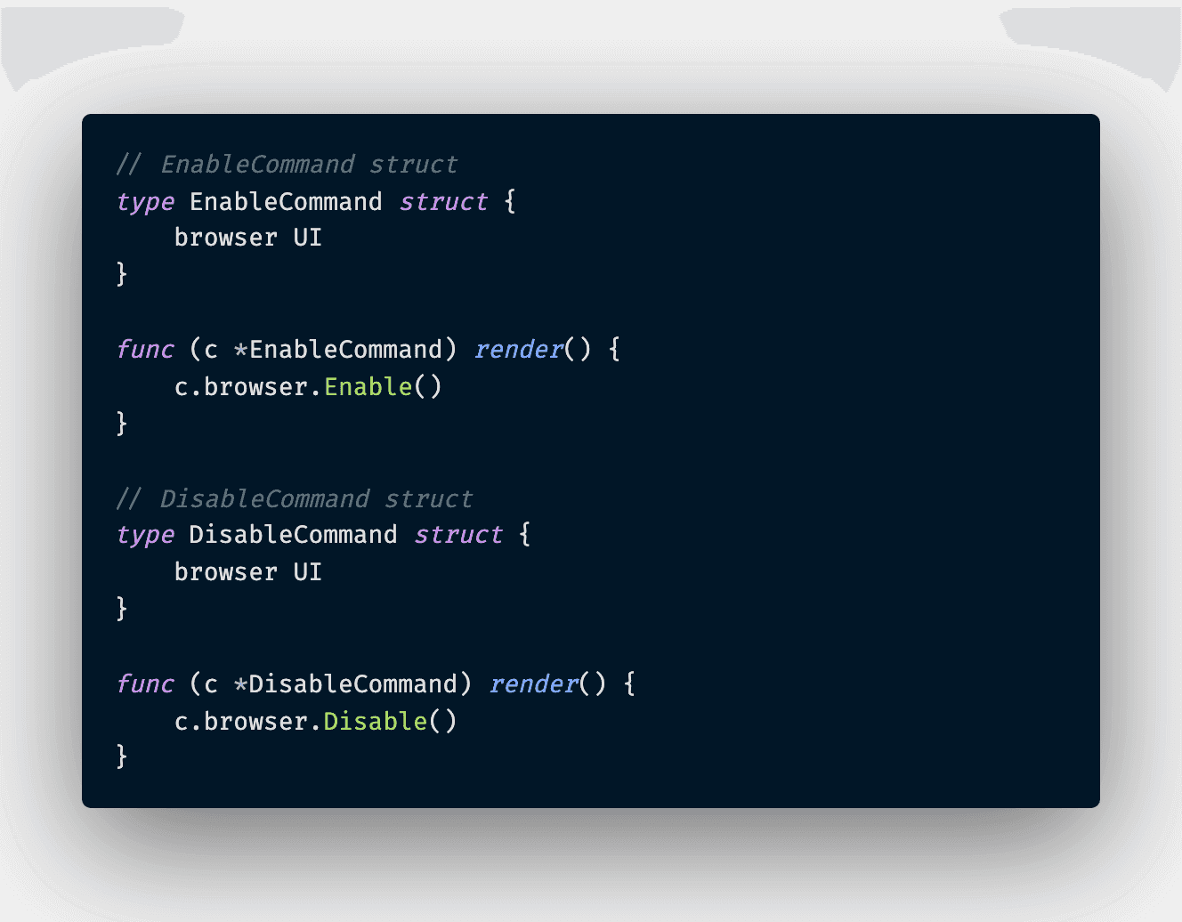 And there we have the Command Pattern implemented in Go. This pattern makes the code very singular and extensible by allow client code to customize its need on demand. The typical example would be how a flag can be attached different actions at run time dynamically