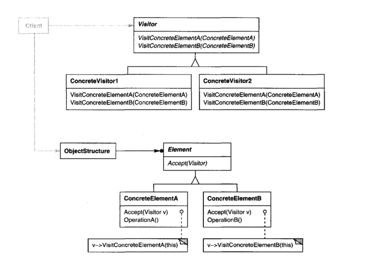 - An object structure contains many classes of objects with differing interfaces, and you want to perform operations on these objects that depend on their concrete classes