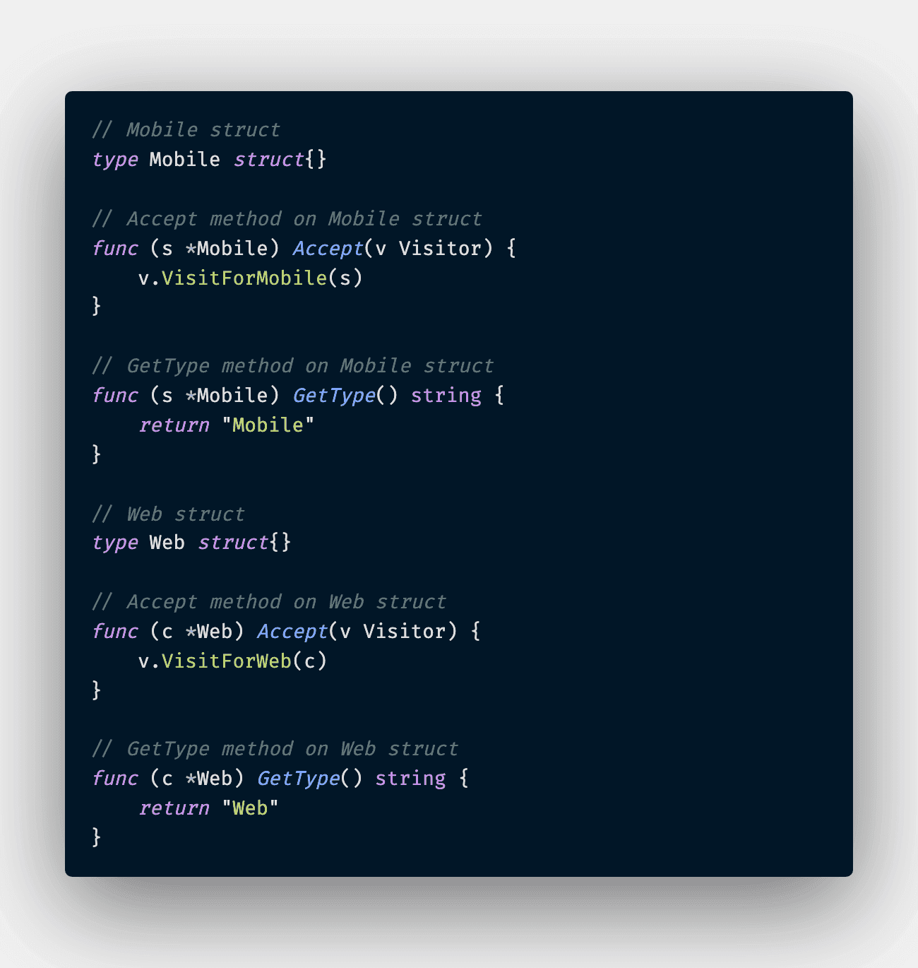 There we have it - the complete implementation of Visitor Pattern in Go. Typical example of this in real life would be how a insurance staff sell their product to different kind of people with various income 😜