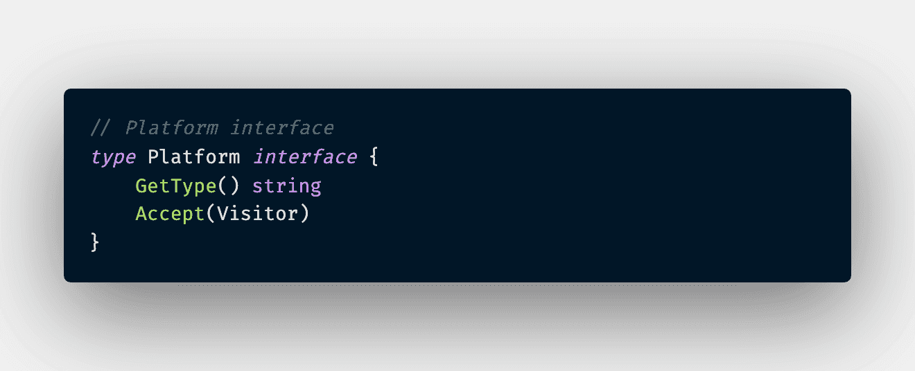 Let's put this pattern into practice. Imagine we have couple of platform so-called web and mobile. We would like to have a visitor to operate on these existing platform without couple anything. First, let's have a platform interface