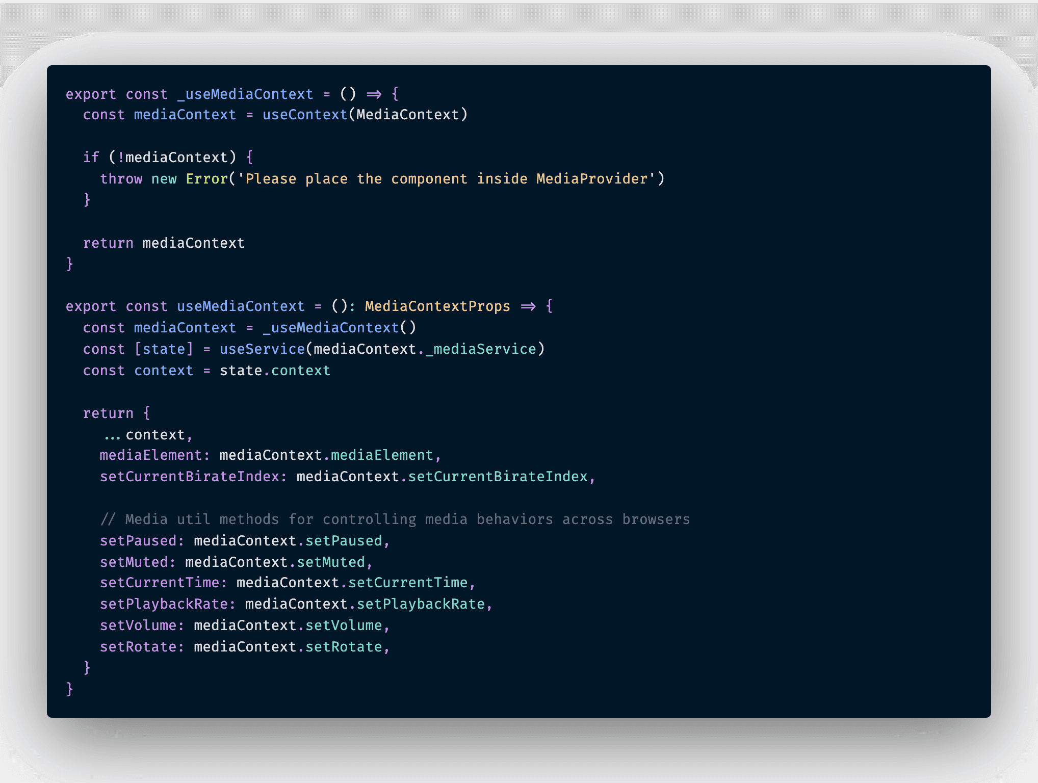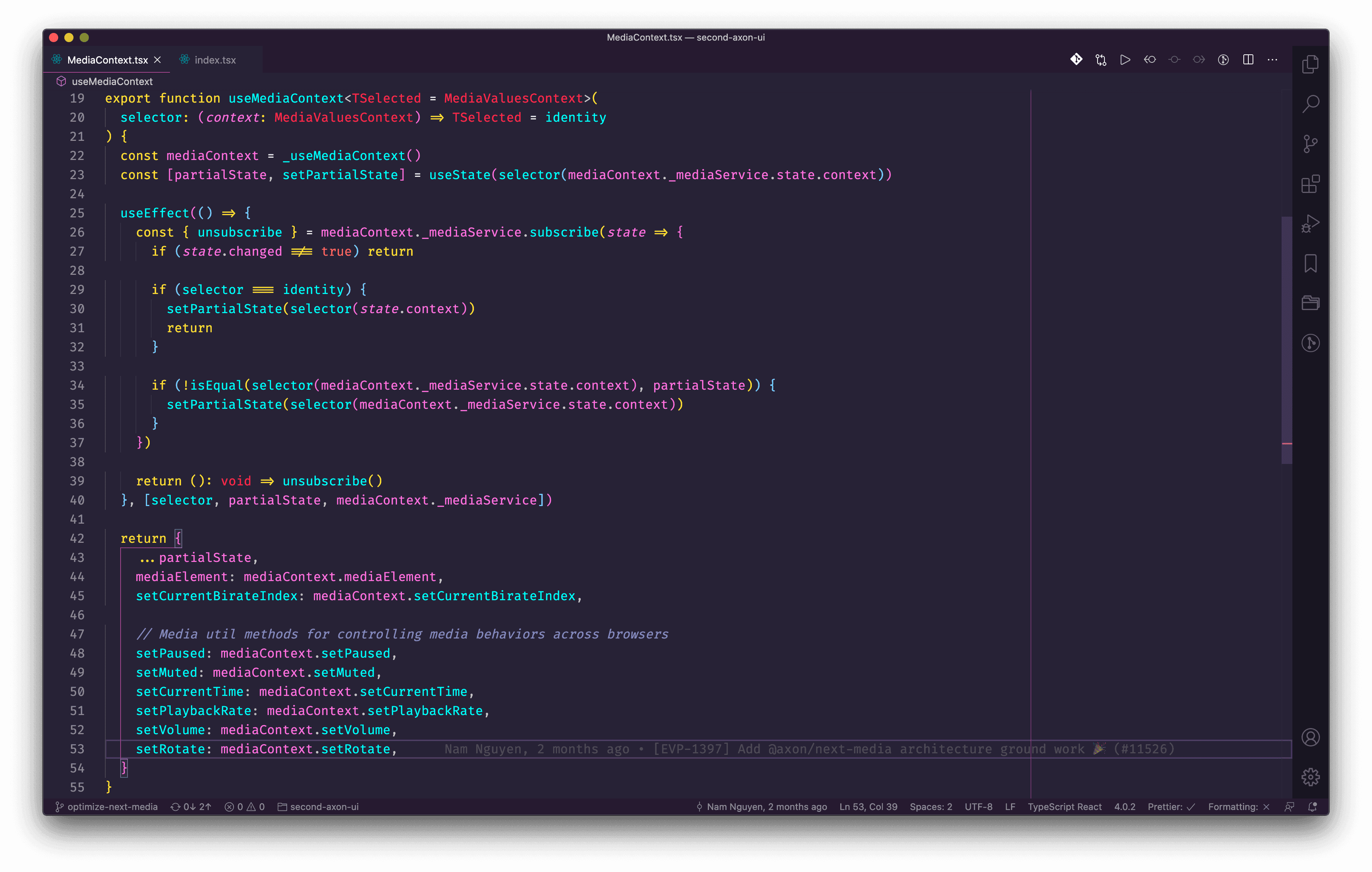 Next, I need to update the useMediaContext hook to consume data from mediaMachine and pass down to connected components.